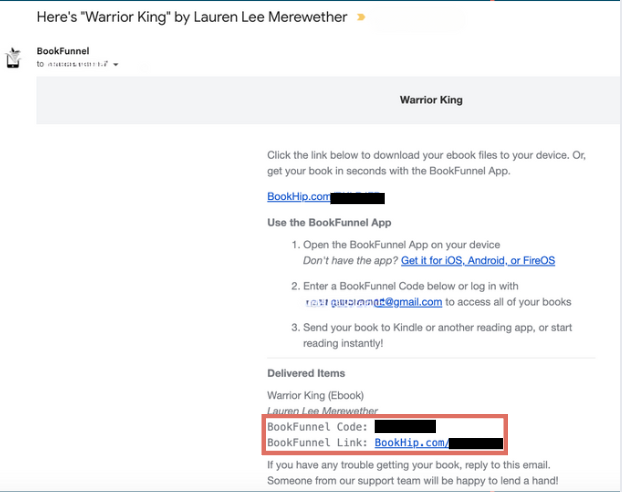 Find the BookFunnel purchase email
