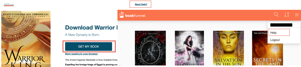 - Click Need Help? in the top right corner if you get stuck or click Help on your BookFunnel Library menu.