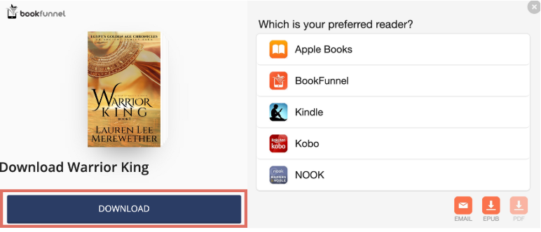 Note: If you have a Kobo, Fire, or Nook, it is easier to open this link from your eReader’s web browser or use the BookFunnel app.