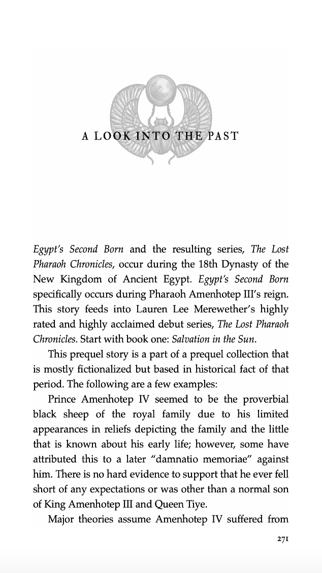 "Egypt's Second Born offers a compelling journey back into the first great civilization of humanity and shows us the structure and societal shape that made the Egyptians so dominant in that span of millennia but would also play a part in its ultimate downfall." - Grant Leishman for Readers' Favorite