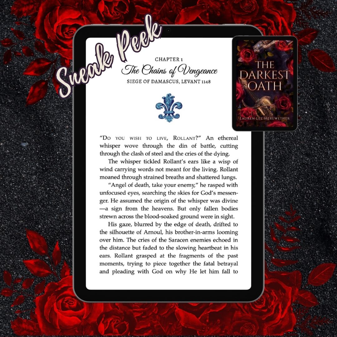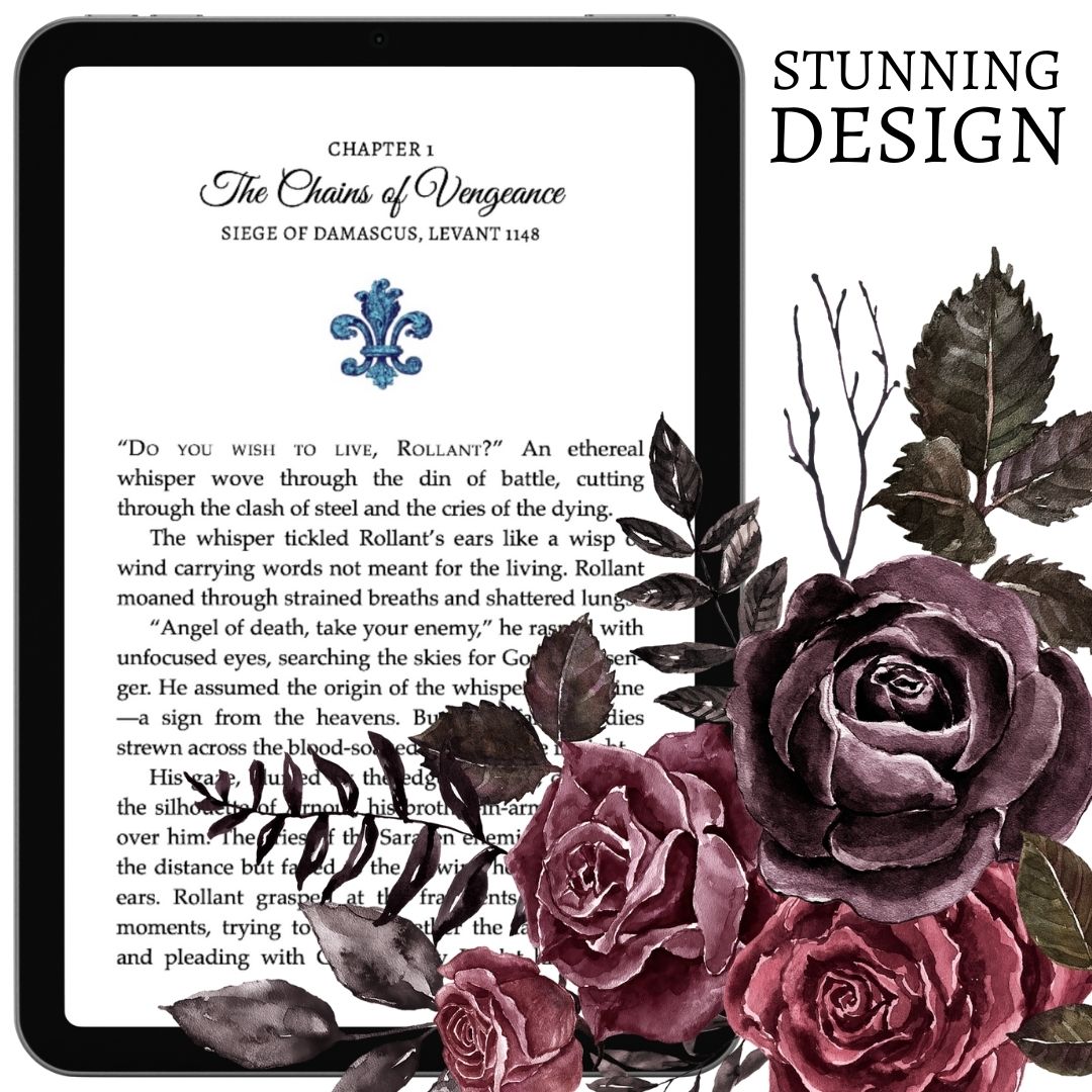 Siege of Damascus, Levant, 1148 “Do you wish to live, Rollant?” An ethereal whisper wove through the din of battle, cutting through the clash of steel and the cries of the dying. The whisper tickled Rollant’s ears like a wisp of wind carrying words not meant for the living. Rollant moaned through strained breaths and shattered lungs. “Angel of death, take your enemy,” he rasped with unfocused eyes, searching the skies for God’s messenger. He assumed the origin of the whisper was divine—a sign from the heavens. But only fallen bodies strewn across the blood-soaked ground were in sight. His gaze, blurred by the edge of death, drifted to the silhouette of Arnoul, his brother-in-arms, looming over him. The cries of the Saracen enemies echoed in the distance but faded to the slowing heartbeat in his ears. Rollant grasped at the fragments of the past moments, trying to piece together the fatal betrayal and pleading with God on why He let him fall to Arnoul’s blade. Arnoul, the man who had shared his food, his cot, his horse—the long years spent training, fighting, and saving each other—he was the one who struck him down? Rollant’s mail-clad fingers, clumsy and weak, drifted toward the wound on his neck. Blood poured warm against his chainmail coif. Breath and blood warred within him—both desperate to escape his broken body. “Forgive me, old friend,” Arnoul muttered softly, though too soft for the weight of his sin. He wiped his blade clean with Rollant’s surcoat, the sacred white stained red. “But your lands, your title—they were ever meant to be mine.” Rollant wanted to scream, but his voice failed him. Life fled from him as the sun perched as a bloodied halo above the walls of Damascus. The ruddy sunlight cascaded onto the once-proud Crusader banners, now torn, ragged, and scorched by fire. The frayed threads fluttered in the smoky air as a last stand for God and the Holy Lands. Memories of his beloved wife and precious daughter flashed before his eyes. Amée’s gentle touch warmed his cheek, and her laughter echoed in their home tucked away in the Chartreuse mountains outside of Lyon, France. Cateline’s tiny hand reached for his to walk by his side in their garden. Dread far deeper than the pain in his flesh pierced his heart at the thought of leaving them with traitors such as Arnoul. “Do you wish to live?” The whisper came again, clearer this time—a woman’s voice, cold and thin. Not a messenger of God. Rollant pushed through the blurry vision and focused on Arnoul’s voice that planted him in the brutal present. “Do you wonder why I have cut you down?” Arnoul shook his head and gritted his teeth. Rollant gasped for air but narrowed his eyes in hatred. Arnoul nodded. “A knight as brave as you deserves an answer.” He leaned upon his heavy, engraved sword. “Our noble King Louis the Young sees you alone in all things. He has refused to favor the rest of us. Too much glory upon your head. Too much favor from the king.” Arnoul’s words wavered as though he struggled with what he’d done, but his eyes remained steady. He lifted his boot from Rollant’s crushed hand, the bones broken and useless from Rollant’s last desperate attempt to defend himself. “God have mercy on my soul; His will be done,” Arnoul murmured. “But life shall be better without you to claim all the King’s favor. For now, I may have a chance to cause the King’s eyes to shine. For now, the King may greet me with a smile and remember my name.” Rollant stared in disgust at the man who had once been like a brother to him. Arnoul kneeled and placed a heavy hand alongside Rollant’s cheek—a cruel reminder of their false friendship and loyalty once shared on the battlefield. “Sorrow fills me, my friend. Be with our Lord, Rollant. I shall see that your wife and daughter be properly cared for, as is right.” A spew of venom desired to leap from Rollant’s tongue into the cursed man’s face. His lips twitched with words unsaid. How dare Arnoul, a traitor, a betrayer, speak of honor and care? The twisted sense of righteousness showcased Arnoul’s greed and decay. How had Rollant not seen through to the envy beneath his mask? A choked, blood-filled gasp flew over Rollant’s lips. Amée’s face, flawless in its memory, appeared before him. Pearl-white skin, her almond eyes gazing at him as they always had—full of love. He could almost hear her voice and feel the warmth of her hand in his. Cateline, too. She would grow into a woman without him. She would never again feel his arms around her in protection or love. If a Saracen had struck him down, he would have surrendered his soul to the Lord, finding peace in the knowledge his death was in God’s honor. But not like this—betrayed by a selfish, greedy act. He was a righteous warrior for the crown of France, and he deserved an honorable death! Arnoul mocked him and stole it all. Something feral surged in Rollant’s chest with a last, wretched pulse of life.Chapter 1 — The Chains of Vengeance