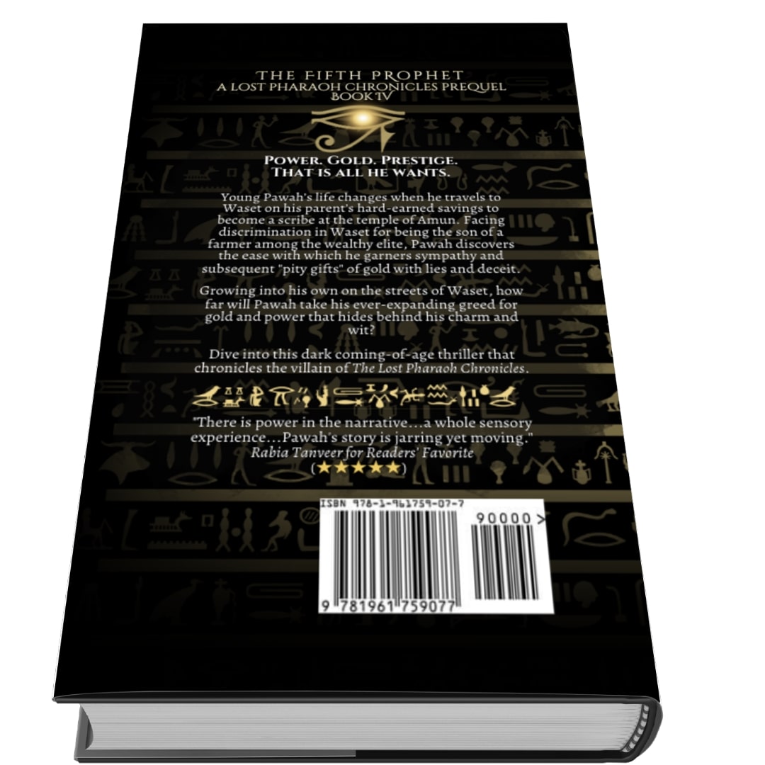 "...a highly immersive and character-driven work of fiction with plenty of dark dramatic twists...follow the rise of a villain with such close emotion, investment, and even sympathy for this devilish character. I would highly recommend The Fifth Prophet to fans of historical thrillers, emotive and dark origin stories, and for Egyptophiles everywhere." - K.C. Finn for Readers' Favorite