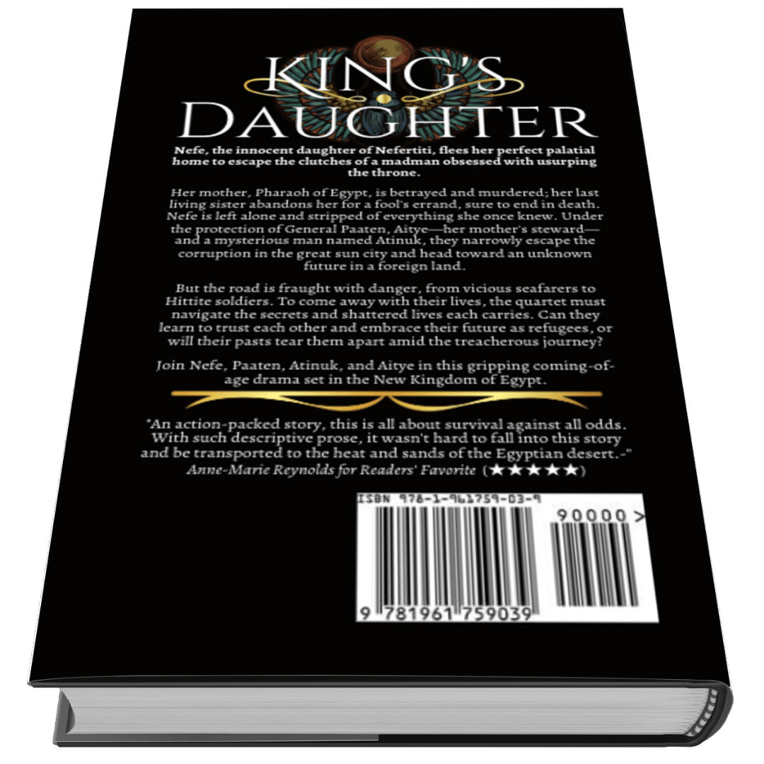 "King's Daughter is a tale of survival, wit, deceit, trust, greed, and sacrifice. The plot of this story was unique and felt so real, showing ancient Egypt through the eyes of Nefe and Paaten. The development was perfect, and the characters were consistent with their moods. I enjoyed the simple writing style and flowing dialogue." - Jennifer Ibiam by Readers' Favorite